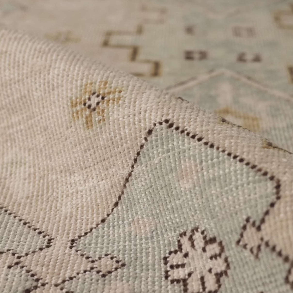 The artisan-made Kai collection effortlessly blends the contemporary influence of color with traditionally timeless looks. Exceptionally made and artfully designed, the hand-knotted Pathos area rug infuses homes with vintage allure and an on-trend colorway. Abrashed tan, green, blue, brown, gold, and cream tones add a chic femme look to the geometric and floral details of this durable wool rug.
