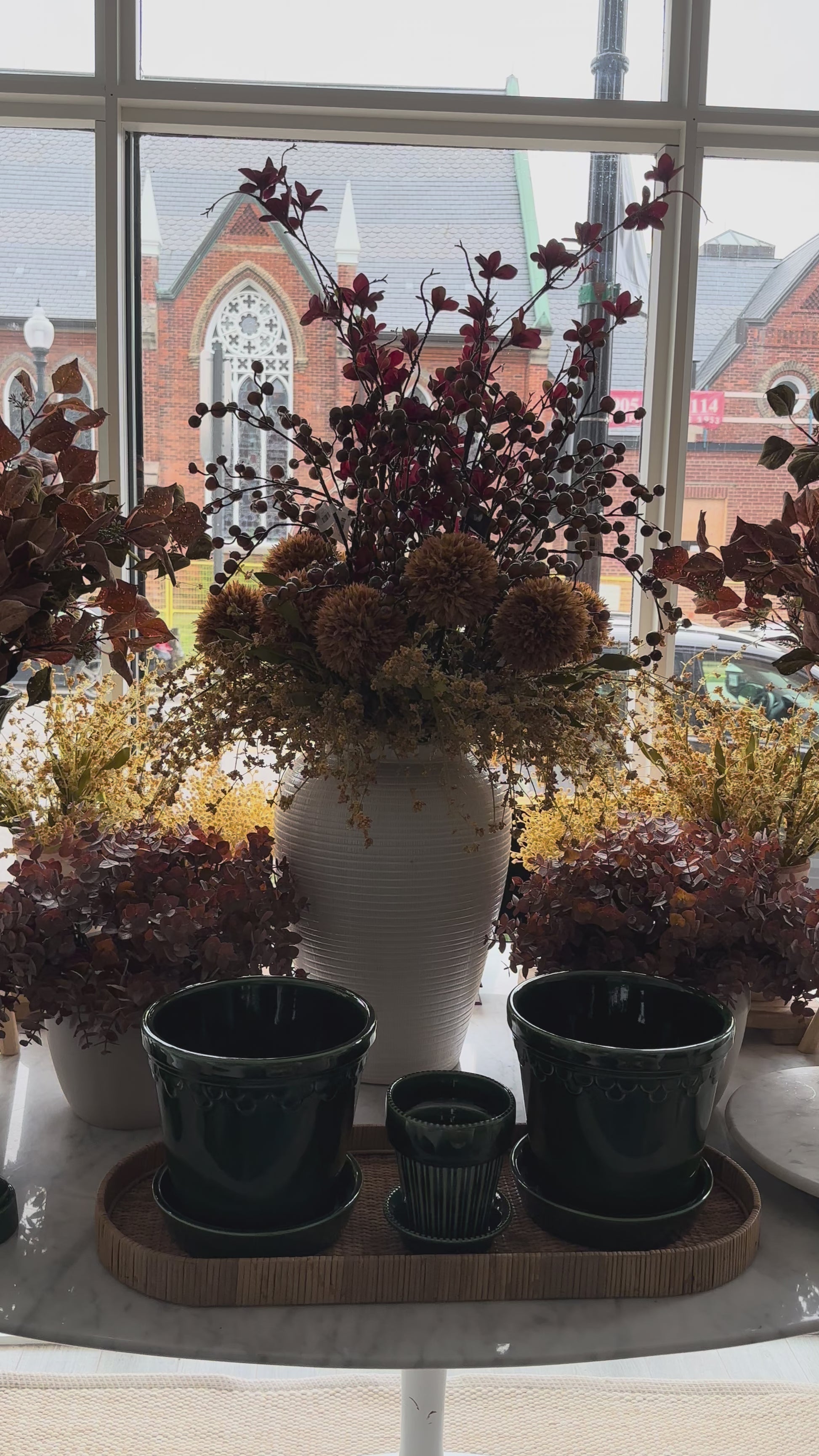 Crafted by Bergs Pots, the Willow vase will make a great statement with its beautiful, bulky curves. Its woven pattern that is reminiscent of old wickerwork is accentuated by the deep glazed surface.
